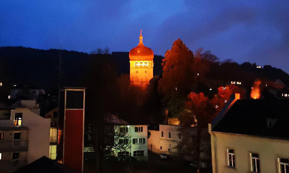 Martinsturm in Bregenz beleuchtet – (c) privat