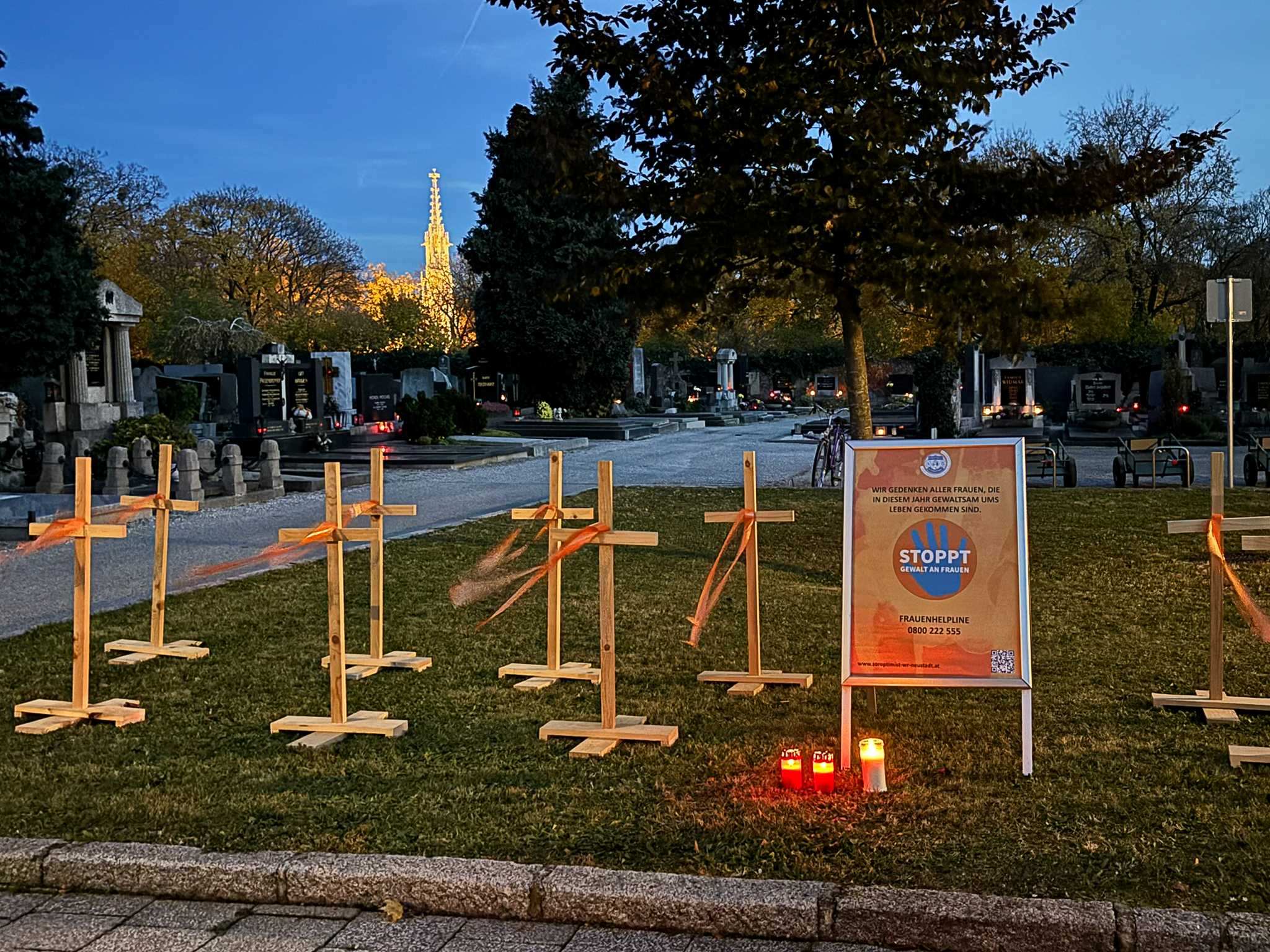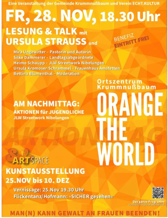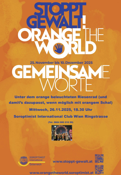 SI Club Waldviertel Schrems Benefiztheater in Pürbach 23. 11. 2025 Oranges Band wird ausgegeben, das dann in den 16 Tagen an Handtaschen, Schirmen, Haustüren etc. gebunden werden soll. |