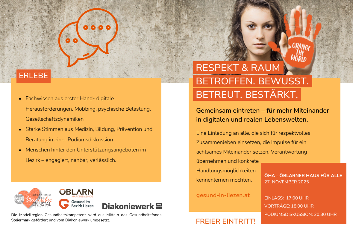 "Mädchen stärken" November 2025, 9:00 - 12:00 Bundesschulcluster Oberwart Keynote Primaria Dr. Strametz-Juranek, Thema "Zusammenhang Gesundheitskompetenz und Prävention von Gewalt an Frauen", Infostände der Polizei "Coffee with Cops" und des Vereins "Lichtblick“.